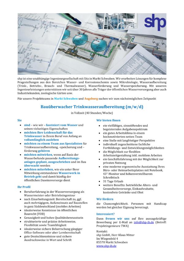 Stellenbeschreibung Bauüberwacher Trinkwasseraufbereitung